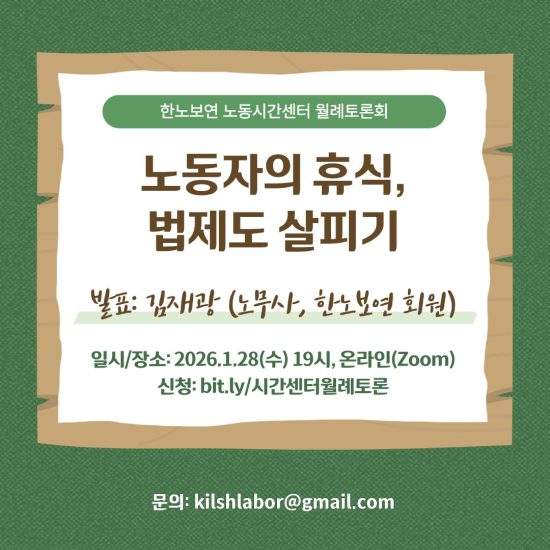 7일 전[한국노동안전보건연구소 노동시간센터 1월 월례토론회]