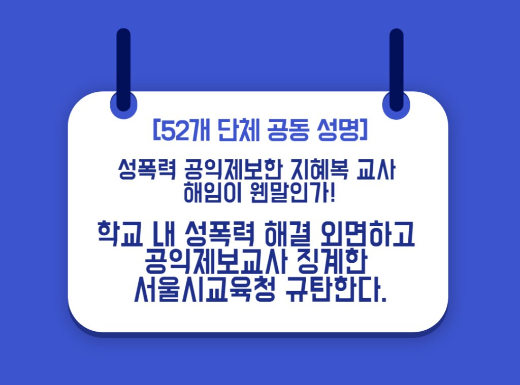 학교 내 성폭력 해결 외면하고 공익제보교사 징계한 서울시교육청 규탄한다.