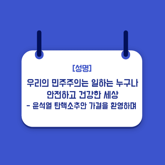 우리는 무분별한 규제파괴로 노동자의 건강과 안전을 위협한 피청구인 윤석열을 노동자의 이름으로 파면한다.