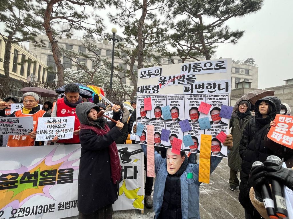 그러나 오늘 우리는 한 가지 사실을 분명히 하고자 한다. 윤석열은 12·3 내란 시도 때문에만 파면되는 것이 아니다. 윤석열은 임기 내내 최악의 반인권 정치와 무능한 반민생 정책으로 일관하며 스스로 궁지에 빠졌고, 그 때문에 비상계엄이라는 반헌법적 무리수를 둔 것이다.