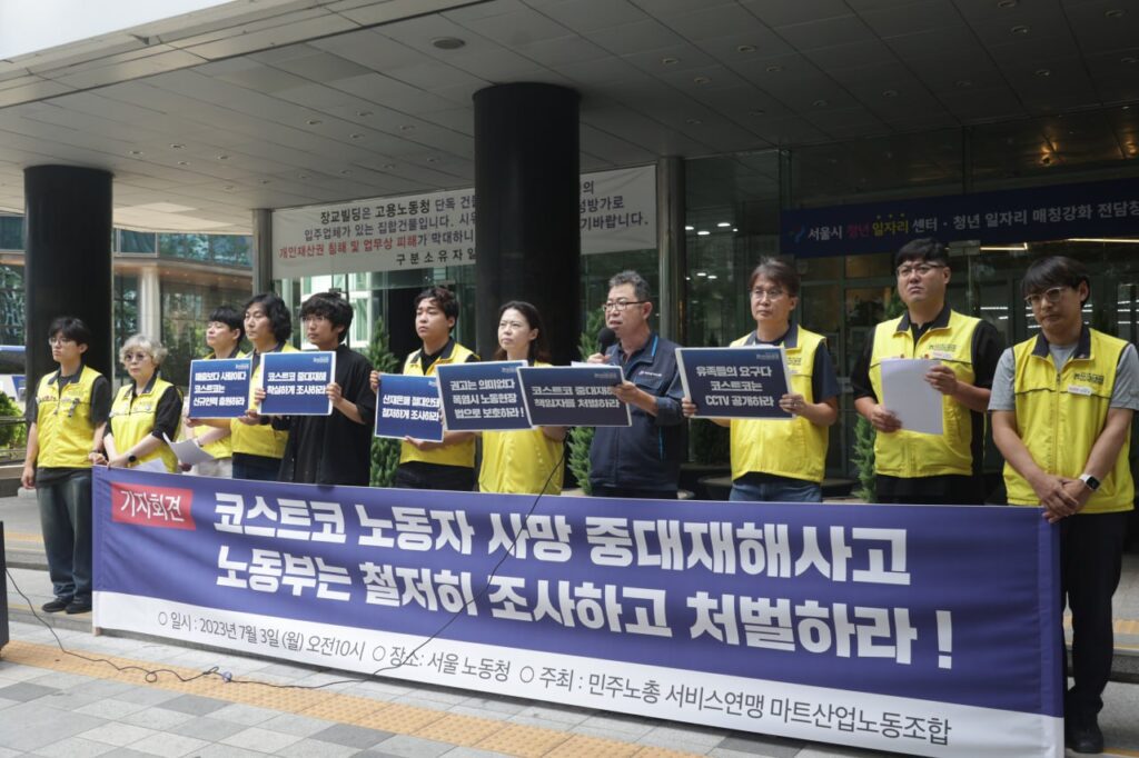 코스트코 규탄 및 중대재해 철저한 조사를 요구하는 기자회견을 7월 3일 오전 10시, 마트노동조합 주최로 서울 노동청 앞에서 진행했습니다. 연구소도 연대발언으로 함께했습니다.