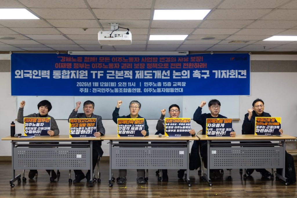 ○ 제목 : “강제노동 철폐! 모든 이주노동자 사업장 변경의 자유 보장! 이재명 정부는 이주노동자 권리 보장 정책으로 전면 전환하라!”외국인력 통합지원 TF 근본적 제도개선 논의 촉구 기자회견