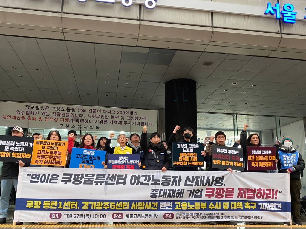 – 쿠팡 동탄1센터, 경기광주5센터 사망사건 관련 고용노동부 수사 및 대책 촉구 기자회견 –