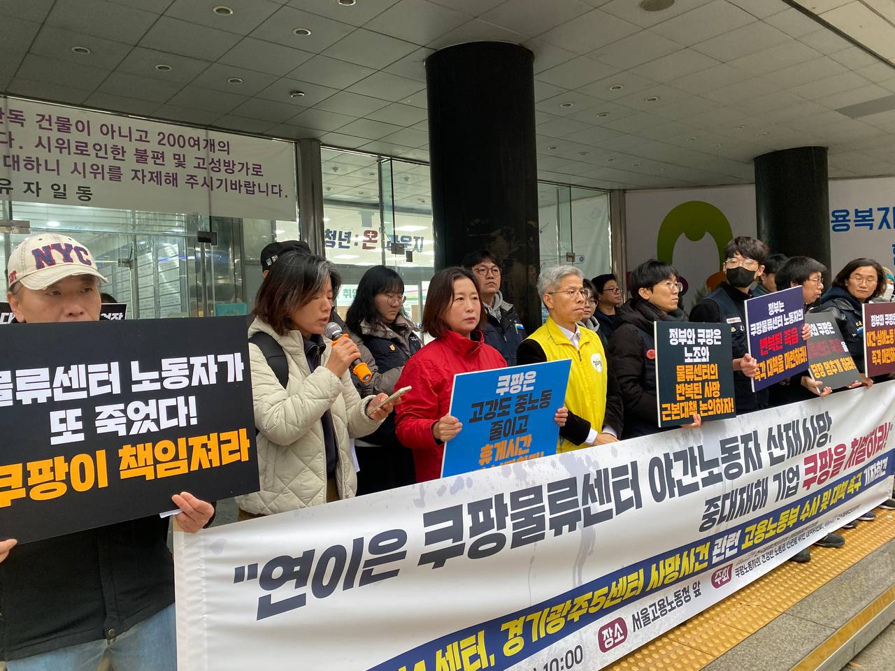 – 쿠팡 동탄1센터, 경기광주5센터 사망사건 관련 고용노동부 수사 및 대책 촉구 기자회견 –