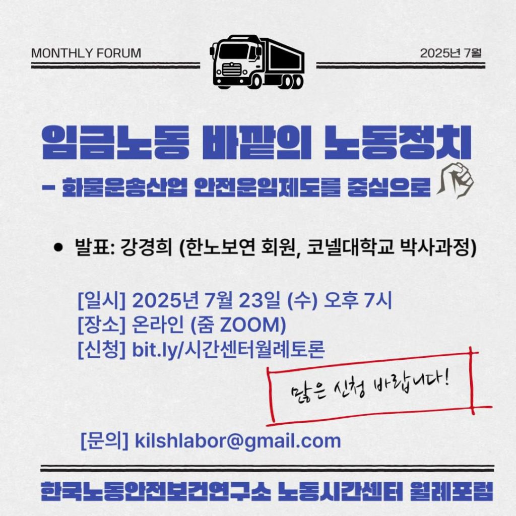 [한국노동안전보건연구소 노동시간센터 7월 월례토론회]