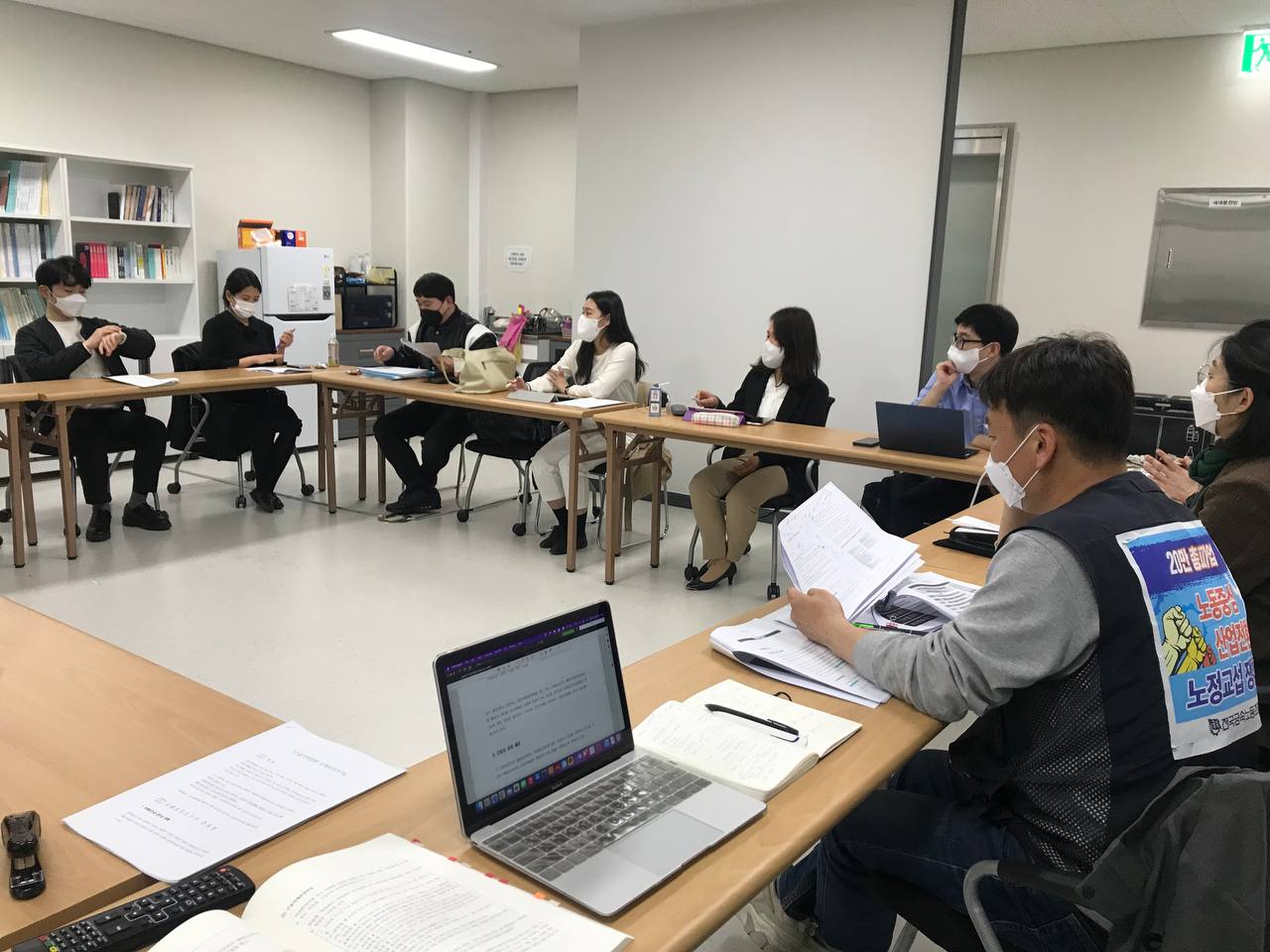 연구소는 3월 10일(목) 부터 총 7회차에 걸쳐 수습노무사 모임인 노동자의 벗과 함께 산업안전보건법 세미나를 진행하고 있습니다. 4월 7일에는 금속노조 케이비오토텍 지회 안재범 동지와 함께 <산재 예방을 위한 활동>을 주제로 토론을 하였습니다. |