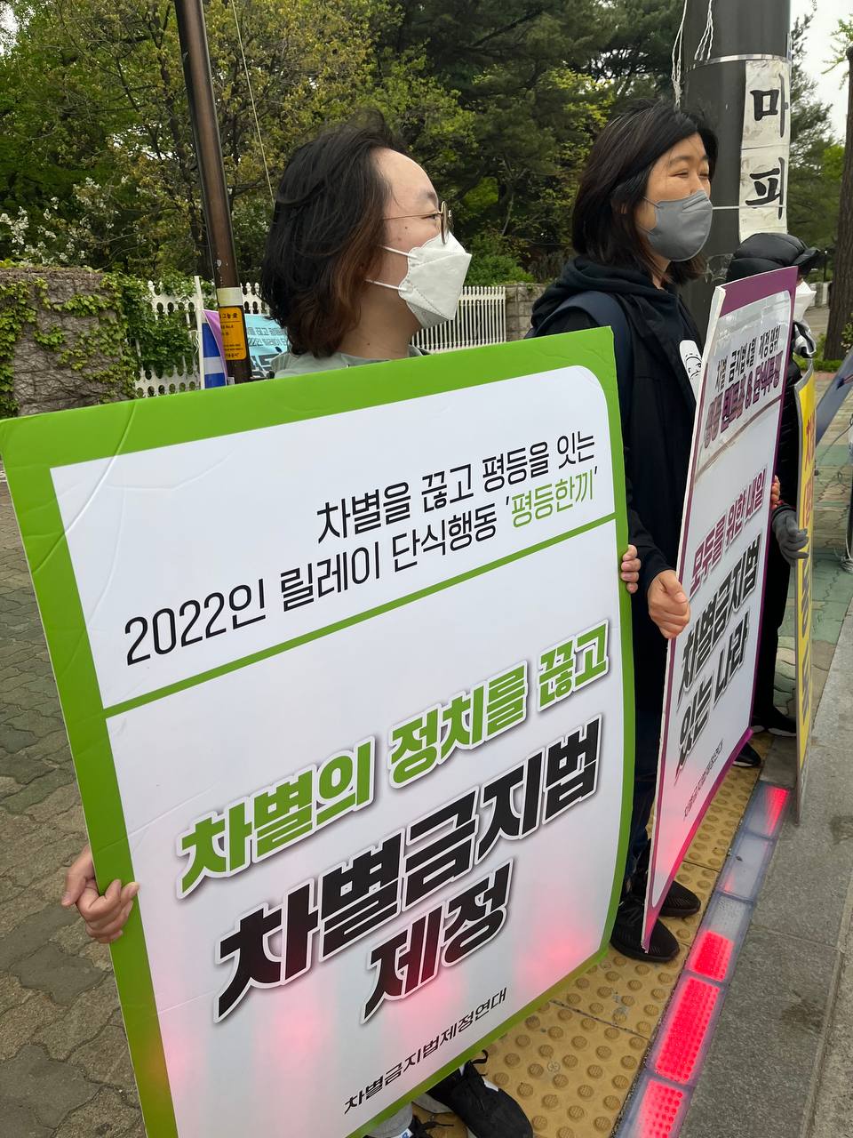 4월 22일(금) 국회 앞에서 차별금지법 제정 피케팅에 연대하고 4월 23일(토) 차별금지법 제정 촉구 집회에 참여하였습니다. |
