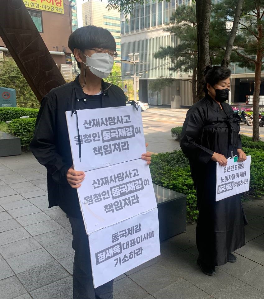 4월 26일(화) 동국제강 비정규직 노동자 사고 사망 후 원청 사과와 공개적 재발방지대책 수립 등을 요구하는 유족 농성장에 연대하였습니다. 원청인 동국제강이 사과하고 문제해결에 적극 나설 것을 요구합니다. |