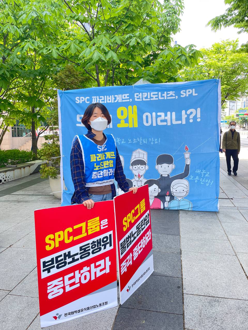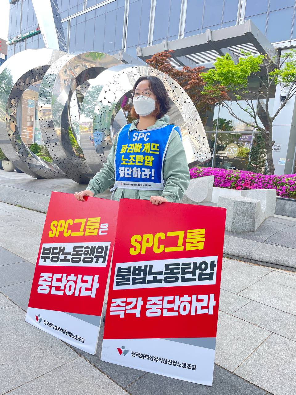 4월 26일(화) SPC 본사 앞에서 사측의 부당노동행위 중단을 요구하는 임종린 지회장 단식 농성장에 연대하고 왔습니다. 임종린 지회장의 단식이 장기화되고 있으나 사측은 적극 대화에 나서지 않고 있습니다.