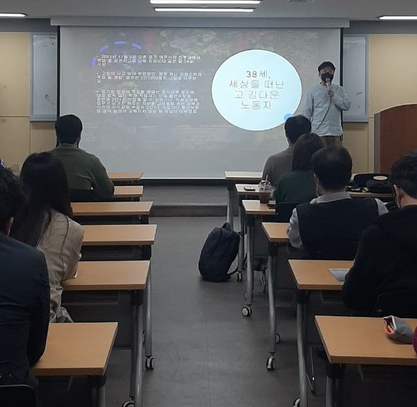 상임활동가인 손진우 동지가 선정기업 발표 발언을 하였습니다.