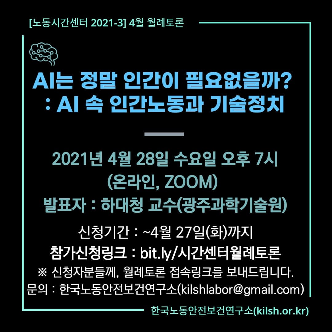 이번 4월 노동시간센터 월례토론에서는 실제 현장에서 인간과 AI가 서로 어떻게 얽히는지 탐색하면서,