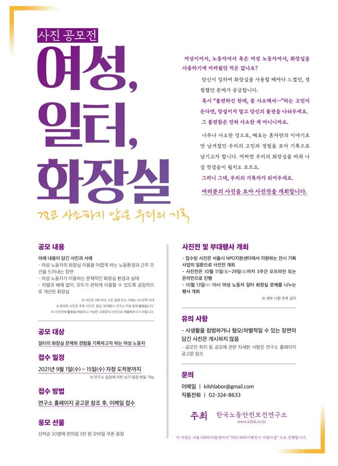 [안내] 사진 공모전 : 여성, 일터, 화장실 |