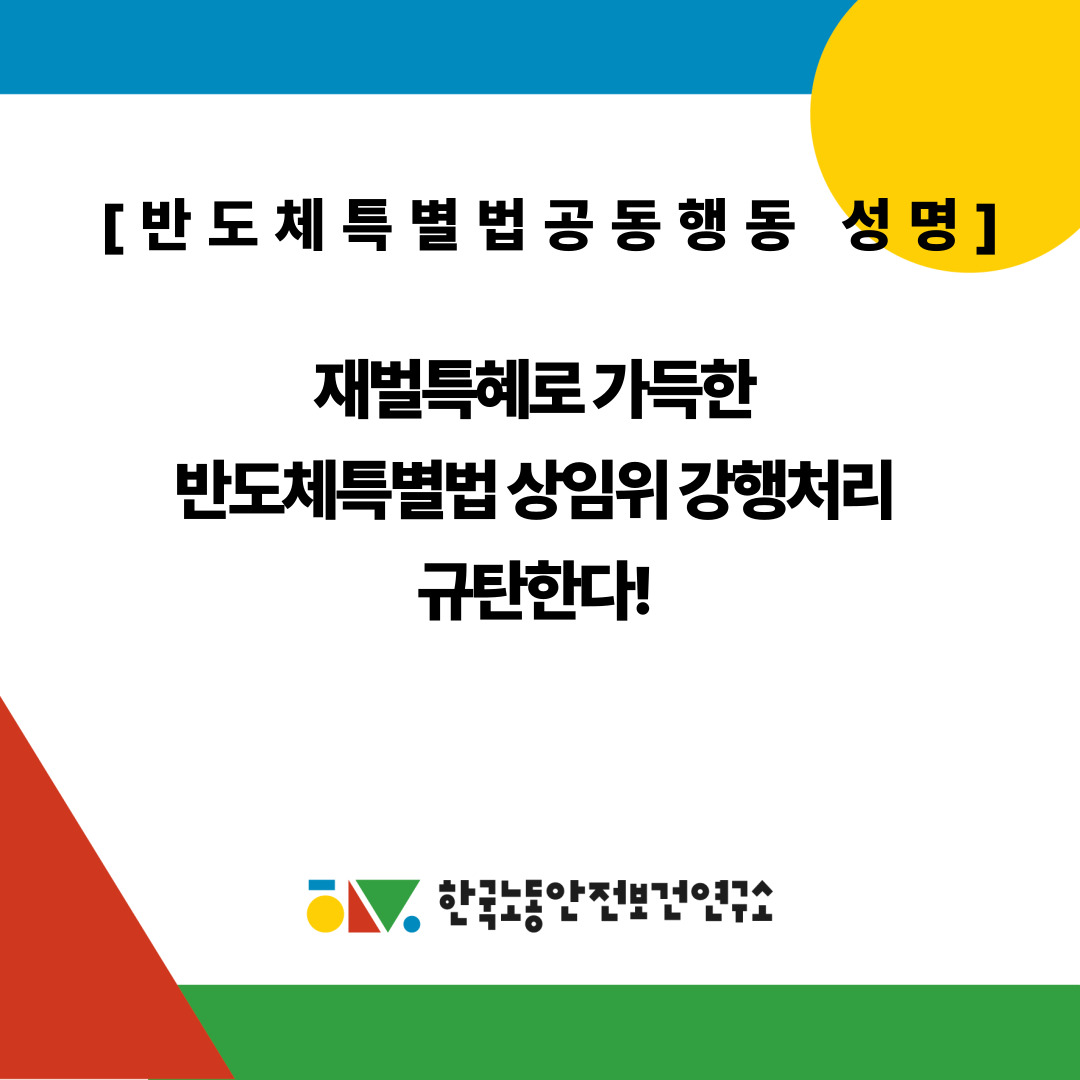 이미 반도체 재벌 대기업들은 수많은 특혜와 특권을 누려왔다. 그로 인해 우리 사회의 불평등과 격차는 건널 수 없는 벽으로 심화되고 있다. 그럼에도 국회는 또다시 친재벌 성장 일변도의 퍼주기 입법으로 함께 누려야 할 우리의 소중한 자산과 생태환경, 그리고 미래를 반도체 재벌들에 대한 특혜와 특권을 위해 저당잡으려 하는가? 국회는 반도체특별법 강행처리 중단하고 법의 폐해를 전면 재검토하라!
