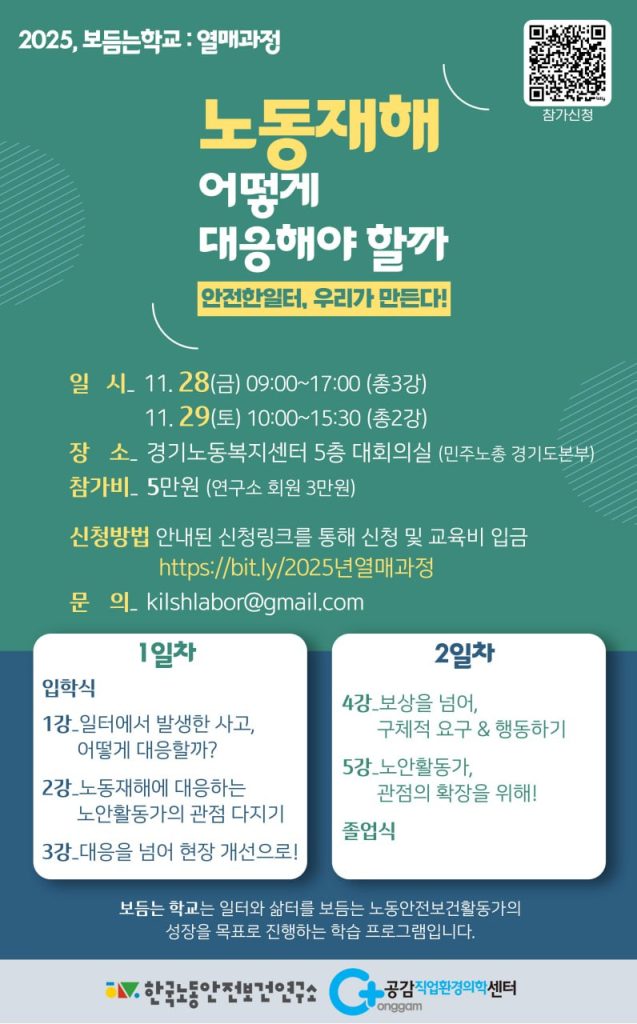 🌱보듬는학교는 일터와 삶터를 보듬는 노동안전보건활동가 성장 프로그램으로, 하반기 열매과정은 노동재해에 맞선 현장 활동가들의 대응 역량 강화에 초점을 두고 기획되었습니다.
