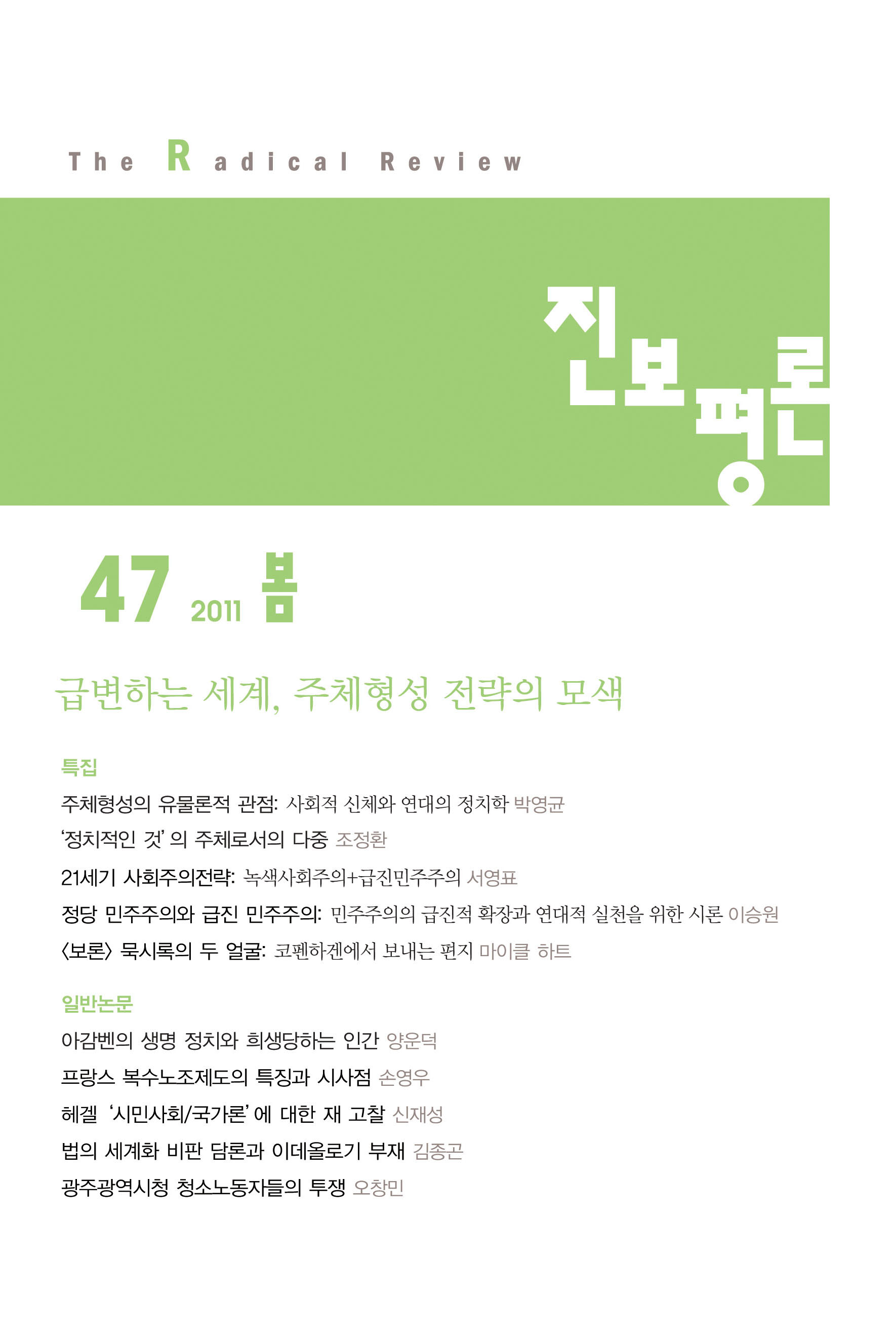 · 21세기 사회주의전략: 녹색사회주의+급진민주주의/ 서영표