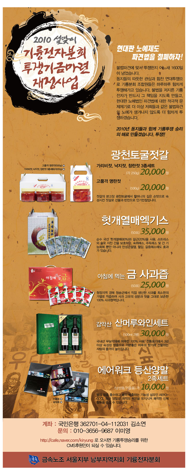 기륭분회투쟁기금 마련 재정사업- 많은 관심 바랍니다