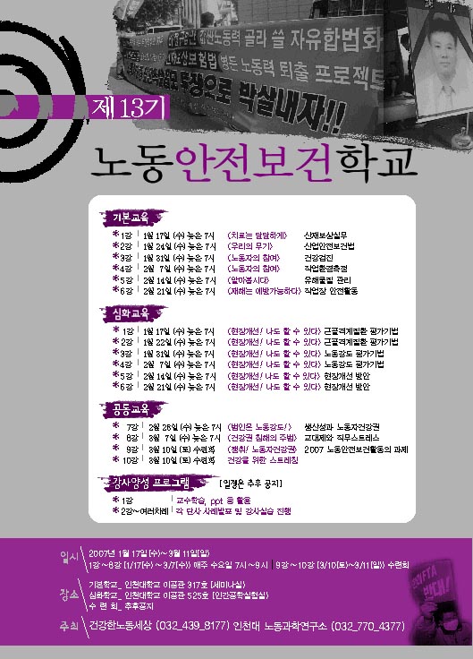9강 3.10(토) 수련회 <쟁취! 노동자건강권> 2007 노동안전보건활동의 과제