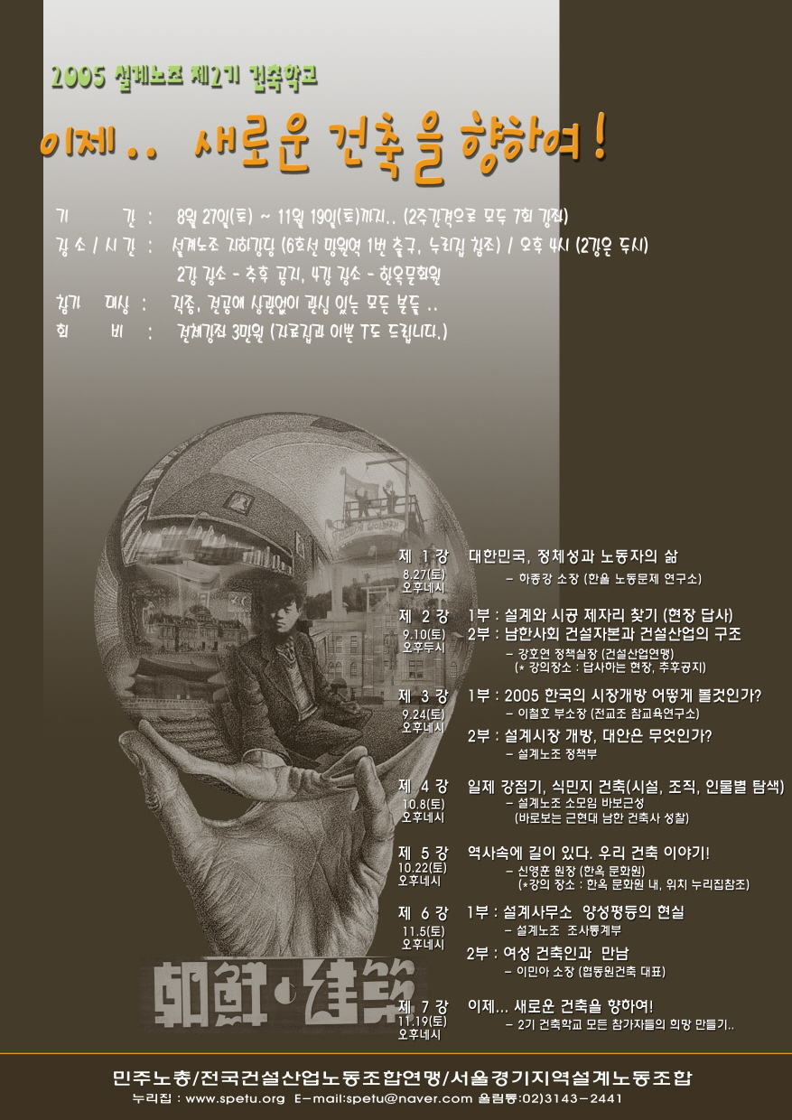 - 설계노조의 건축학교는 제1기에서도 예비노동자와 현장노동자간의 교류를 통해