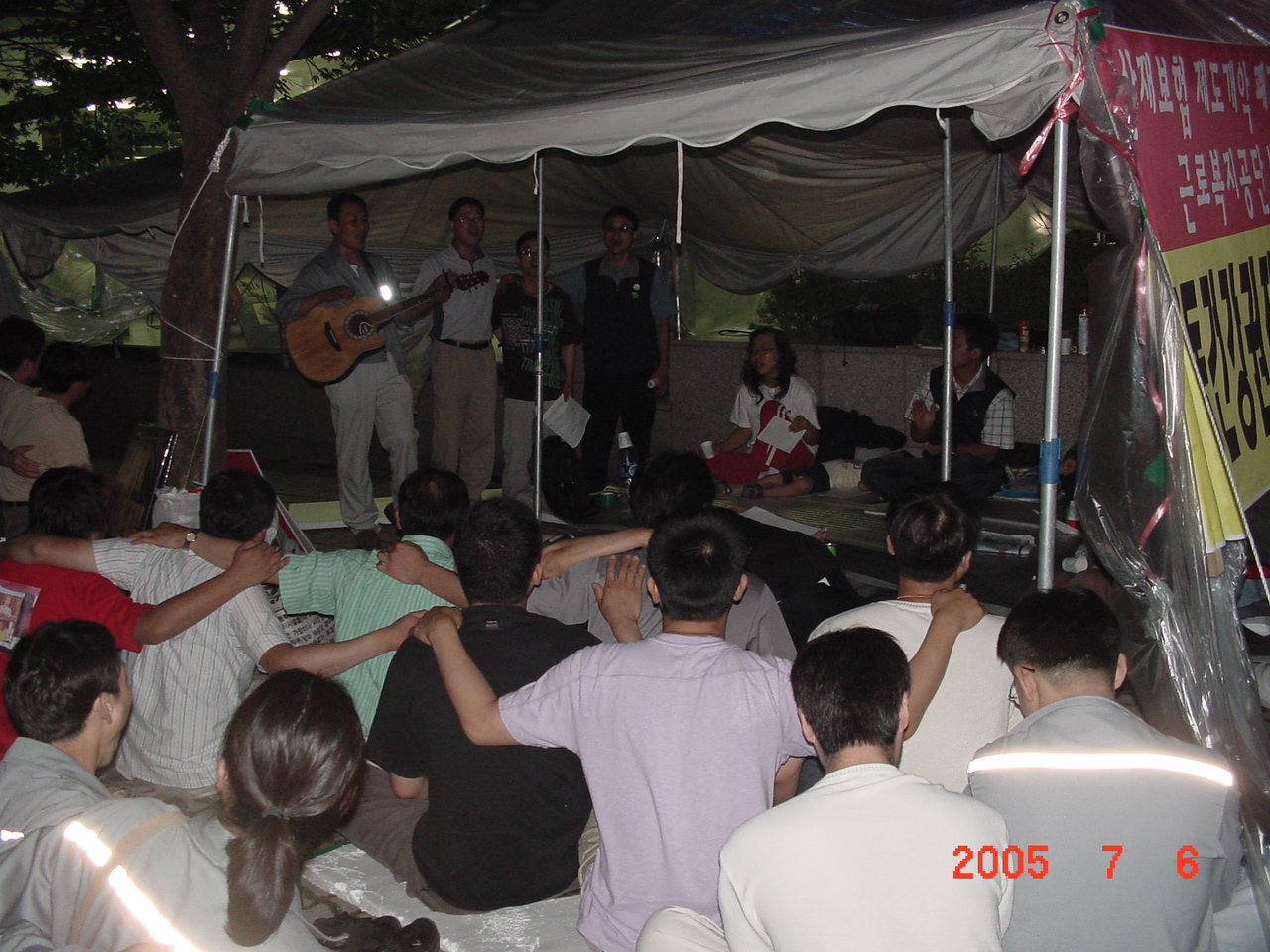현대중공업 노래마당 동지들의 안내에 따라 함께 노동가요를 부르며 농성장의 저녁을 맞았습니다.
