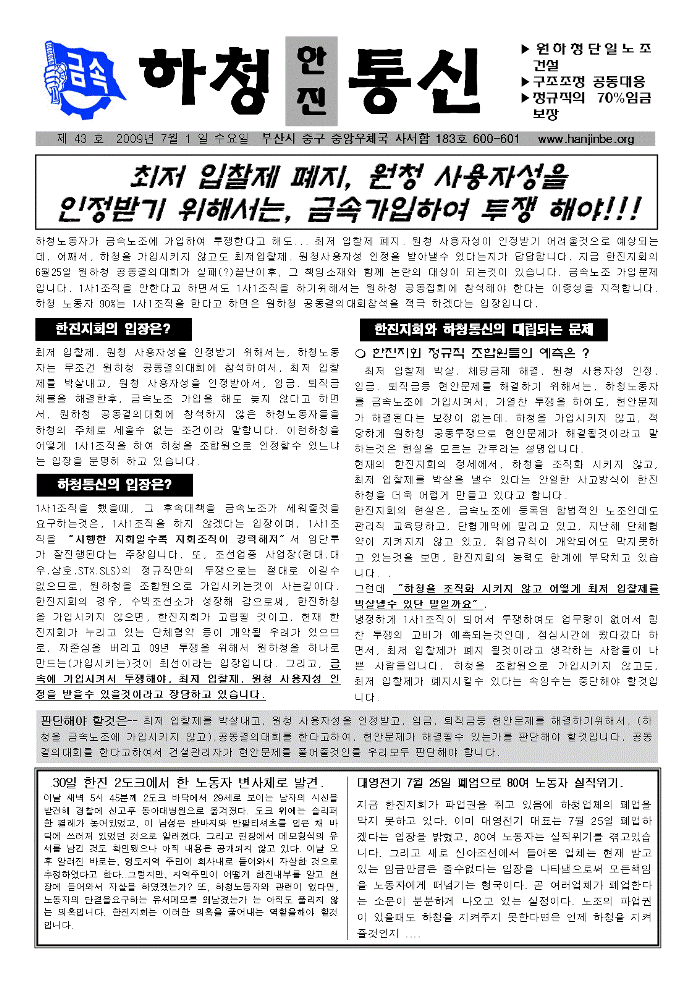 그런데, 현장의 힘 6월 24일자 호에서는 하청을 무시하는 주장은 사과해야 할것......