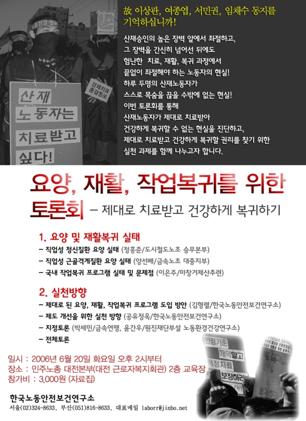 [토론회] 산재노동자의 요양,재활,복귀 토론회