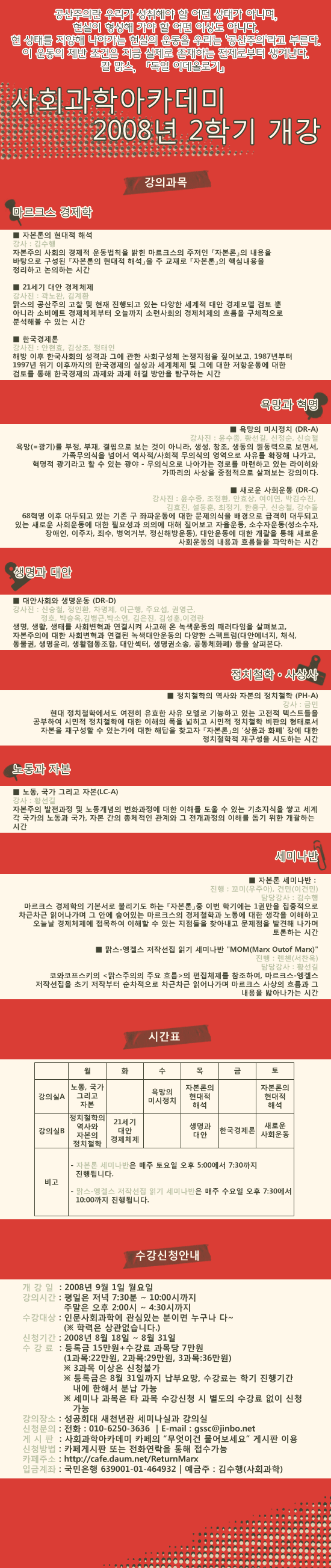사회과학아카데미 2008년도 2학기 강의 시작!