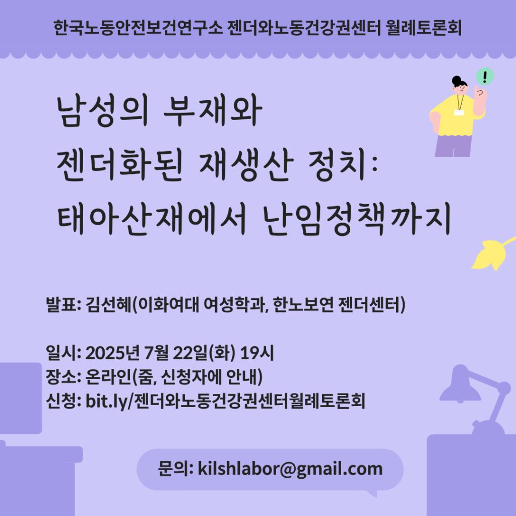 [한국노동안전보건연구소 젠더와노동건강권센터 7월 월례토론회]