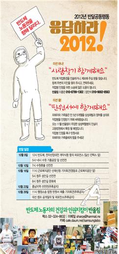 지난 10월, 반도체 노동자의 건강과 인권 지킴이 #반올림(이하 반올림)은 “응답하라 2012!”를 슬로건으로 ‘반도체 노동권을 향해 달리다(이하 반달) 공동행동’을 진행했다.