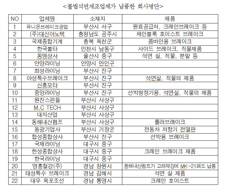 – 4년간 제조 및 유통한 불법석면제조업체 노동자의 제보로 적발되다