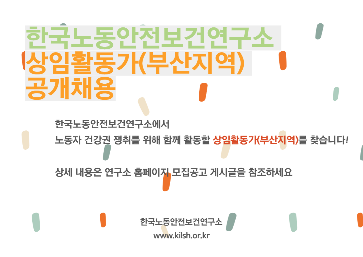 부산은 아직 채용 중이니, 회원 여러분 주변에 노동안전보건 운동에 관심 있으신 분이 계시다면 적극 안내 부탁드려요~