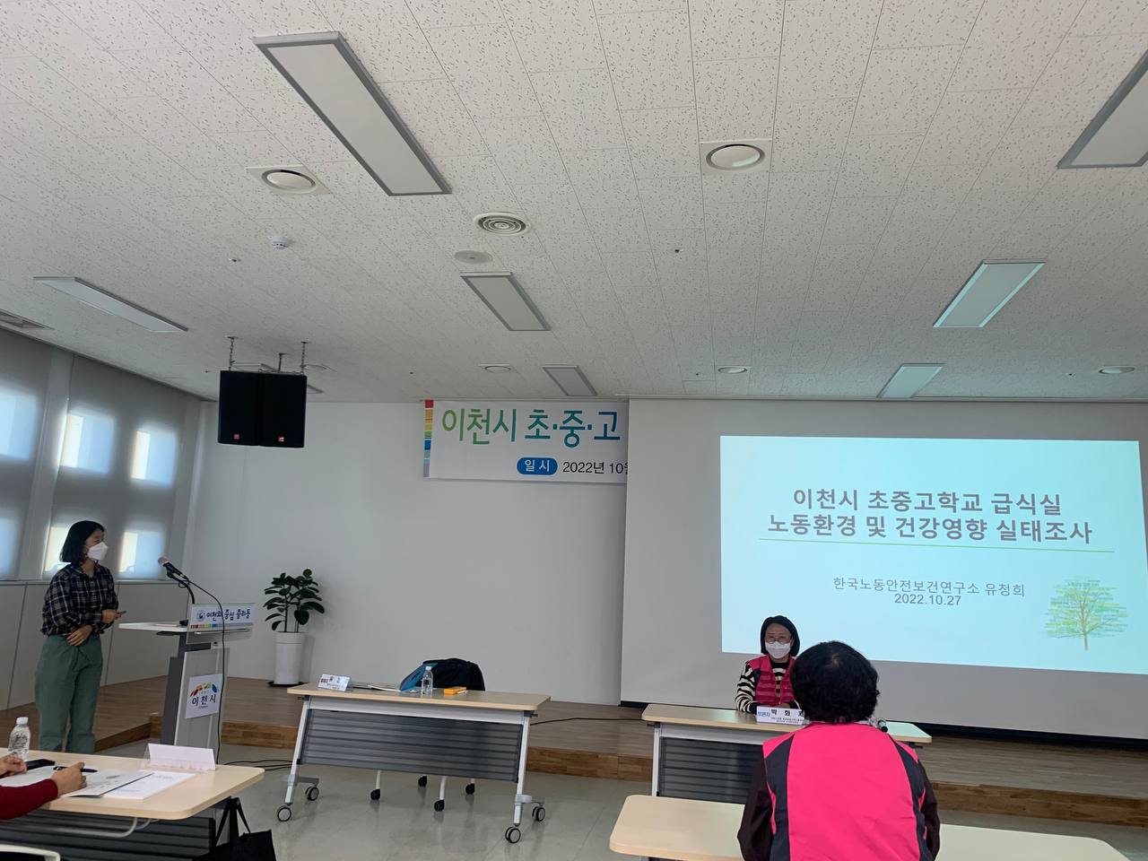 이천 초중고학교급식실 노동환경 및 건강영향 실태조사 결과 발표 토론회가 열렸습니다. 이천시, 시의회, 경기도교육청, 이천교육지원청에서 담당자들과 급식노동자들도 여럿 참석하셔서 성황리에 진행되었습니다.