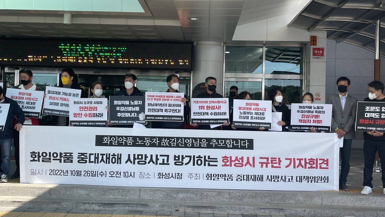 화일약품 중대재해 사망사고 방기하는 화성시 규탄 기자회견