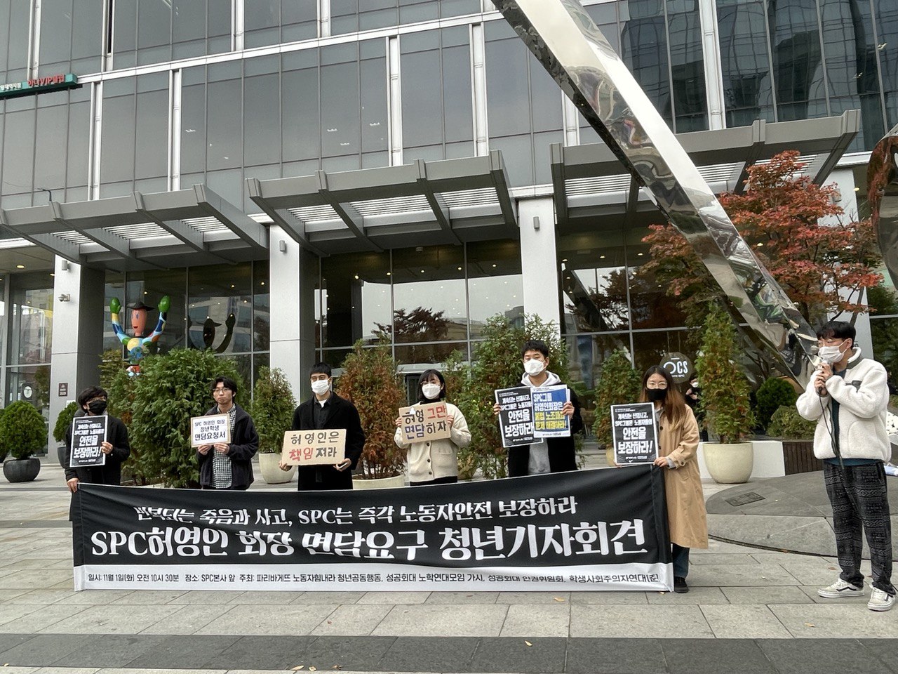 파리바게뜨 청년 공동행동, 학생 사회주의자, 성공회대 노학연대모임 가시, 성공회대 인권위원회 등 청년학생단체들이 SPC 허영인 회장에게 ‘SPL, SPC 문제에 대해 응답하라’는 “SPC 허영인 회장 청년학생 면담요청 기자회견”을 진행하였습니다.