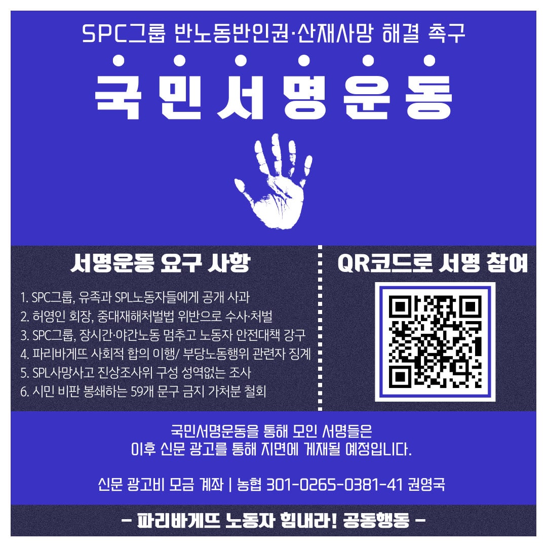 SPC그룹 반노동반인권, 산재사망 해결 촉구 국민서명운동을 시작합니다