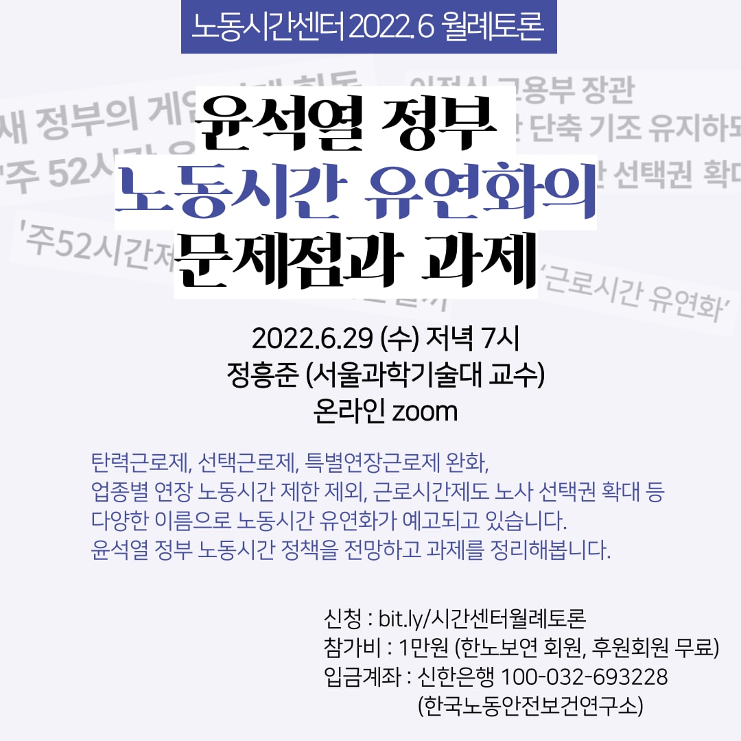 6/29(목) 저녁 7시, 노동시간센터 월례토론에서