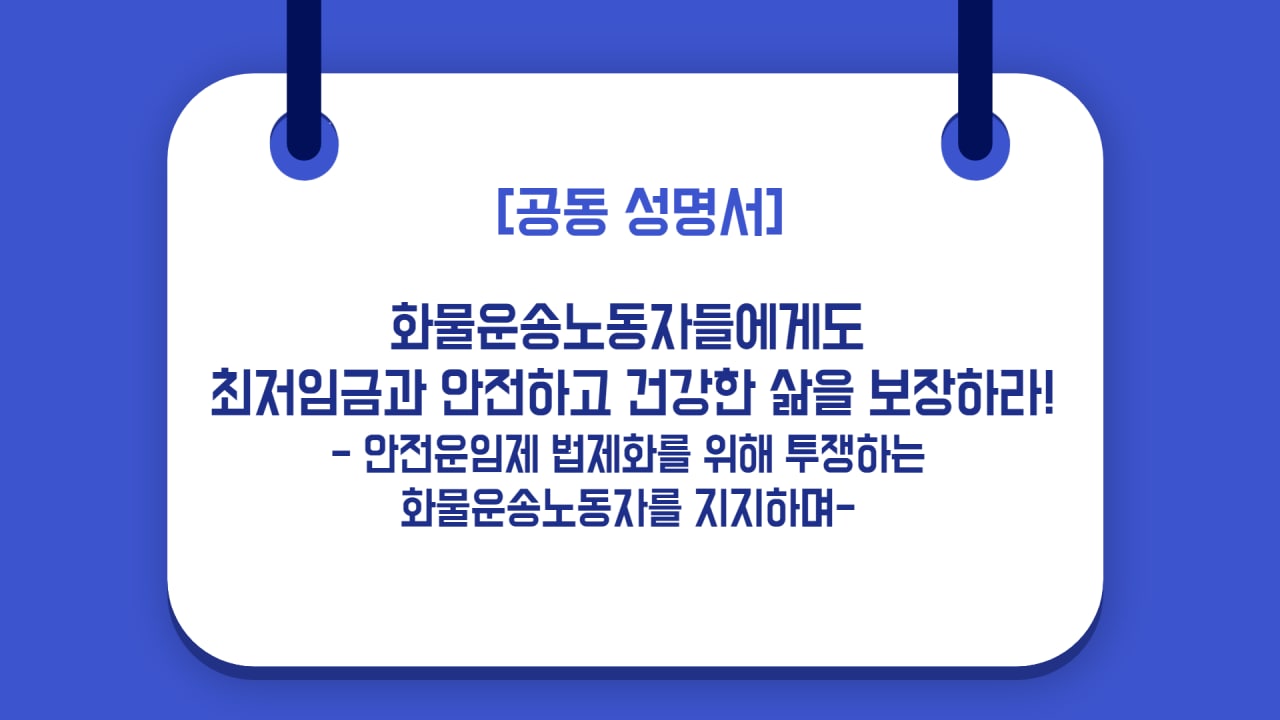 화물운송노동자들에게도 최저임금과 안전하고 건강한 삶을 보장하라!