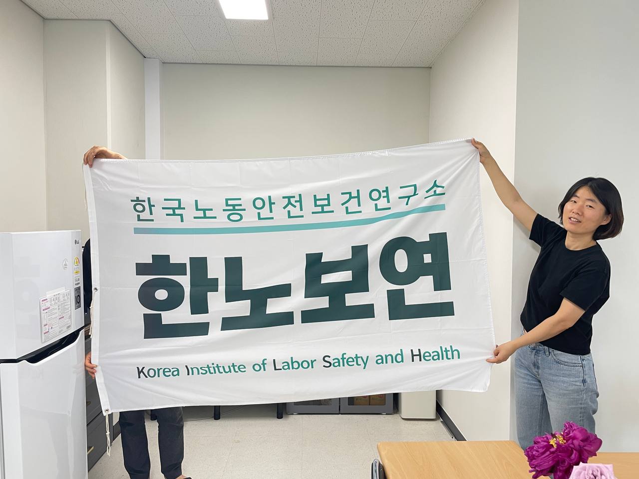 지난 5월 회원 온라인 투표를 거쳐 한국노동안전보건연구소 기 최종안이 결정되었습니다. 기존 연구소 깃발이 있긴 하지만, 보다 기동성 좋게, 거리에서 한노보연 회원, 후원회원 분들이 잘 찾아오실 수 있게 깃발을 새롭게 제작했습니다.
