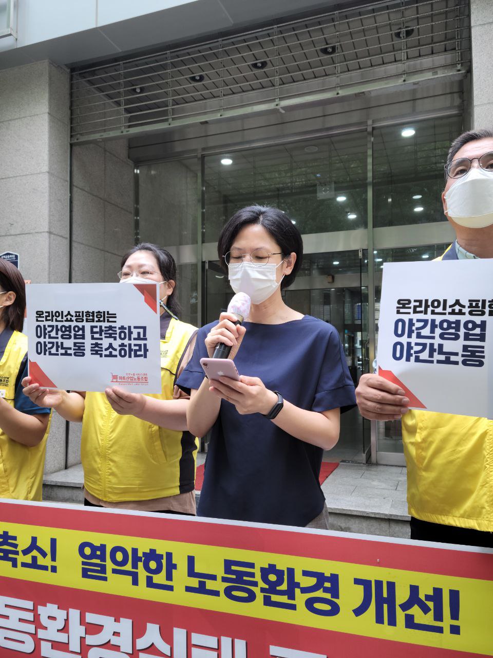 질 나쁜 일자리 양산 중단! 야간노동축소! 열악한 노동환경개선! 온라인쇼핑협회는 열악한 노동환경 즉각 개선하라