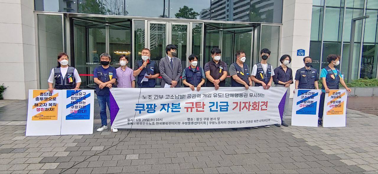 물류센터 에어컨 설치, 휴게시간 보장, 조합원 해고 취소 등을 요구하며 쿠팡 본사 로비 점거하고 있는 쿠팡 노조에 대해 회사가 고소고발을 남발하여 규탄하는 기자회견에 연구소도 연대 발언을 하였습니다.