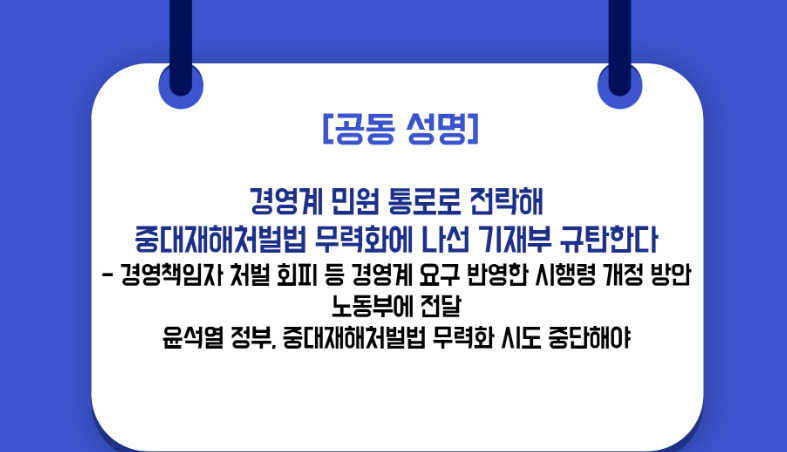 경영계 민원 통로로 전락해 중대재해처벌법 무력화에 나선 기재부 규탄한다.