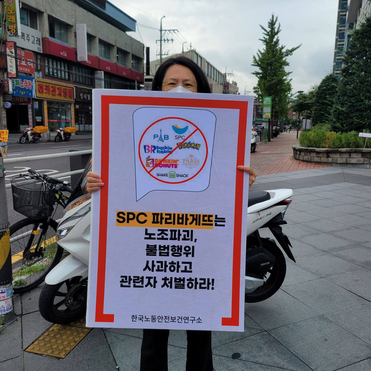 연구소도 8월 10일과 8월 25일 가산디지털역 인근 2곳 파리바게트 매장에서 상임활동가들이 SPC 파리바게뜨 1인시위를 진행했습니다. SPC그룹 파리바게뜨 투쟁에 지속적인 관심과 연대 부탁드립니다.