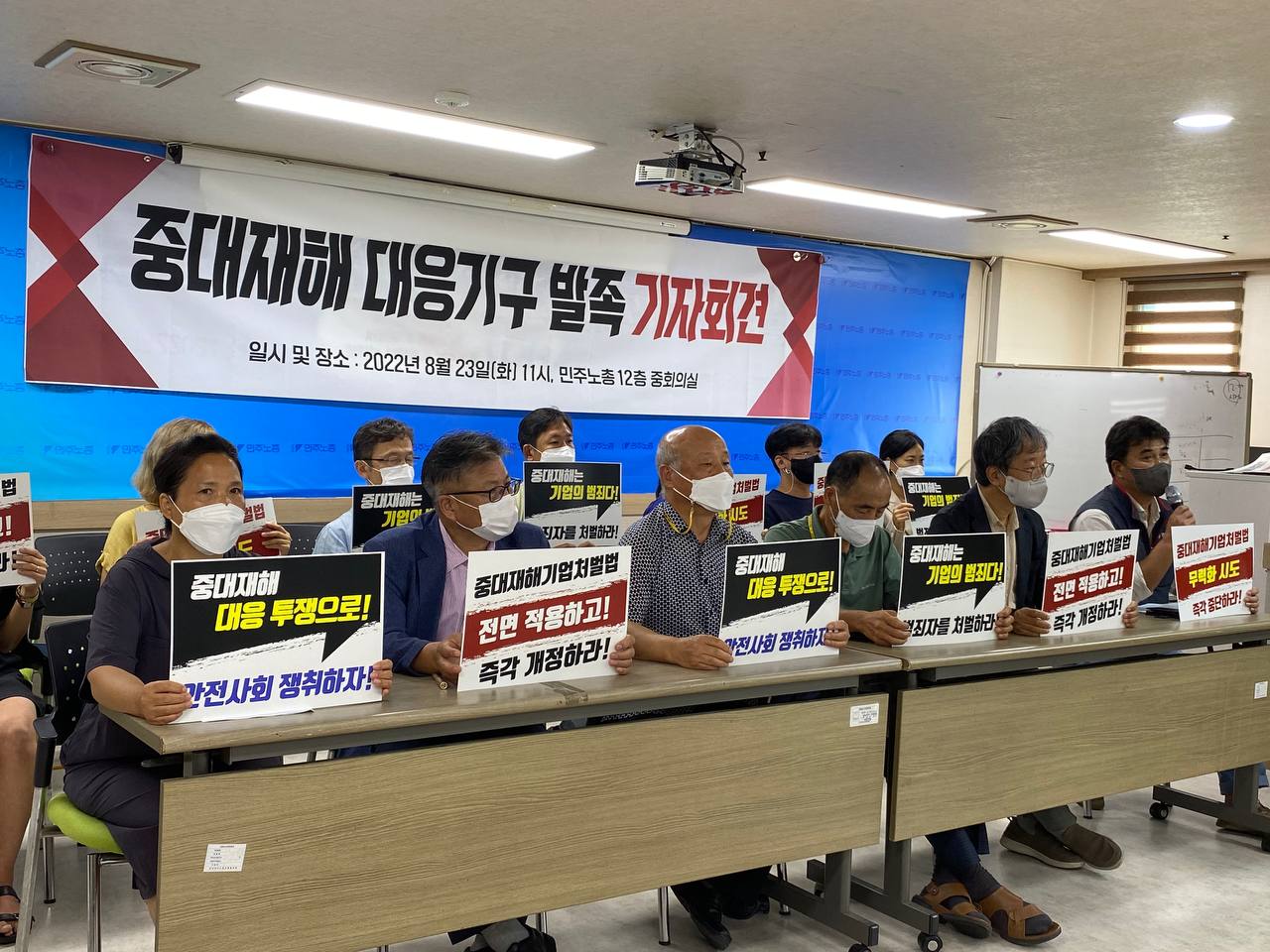 중대재해는 기업의 범죄라는 문제의식으로 중대재해 없는 세상 만들기 운동본부가 8월 23일에 발족됐습니다.