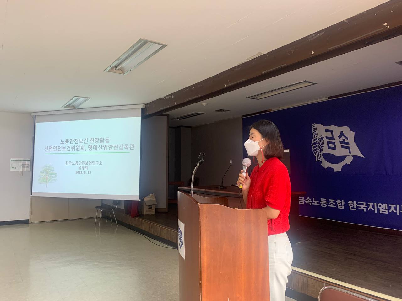 지난 8월 13일 토요일에 오후에 한국지엠 민추위와 함께하는 교육 시간을 가졌습니다. 산업안전보건위원회, 명예산업안전감독관(유청희), 산재보상 이해와 대응(최민)과 을 주제로 교육 진행하였습니다. 총 6차례로 기획했던 노동안전보건 활동가 되기 교육이 마무리되었습니다. 이후 건강한 한국지엠 사업장으로 가기 위해 또 다른 기획으로 만날 예정입니다.