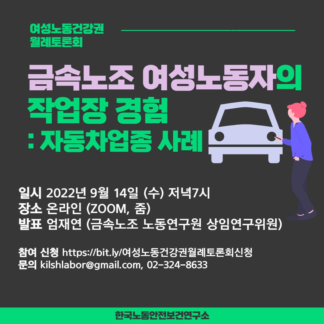 [안내] 여성노동건강권 월례토론회 9월에 열립니다