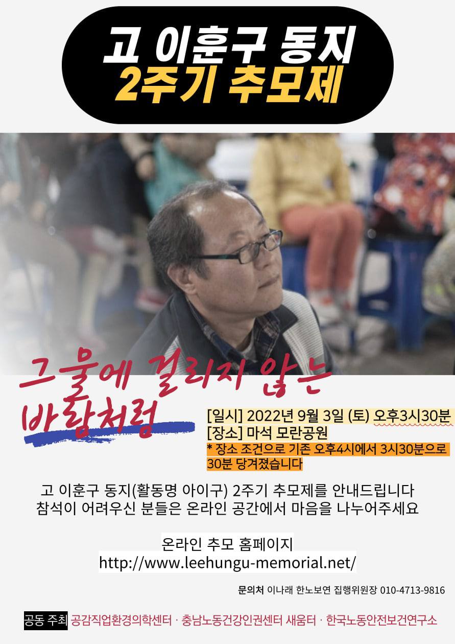 [안내] 고 이훈구 동지 2주기 추모제가 열립니다