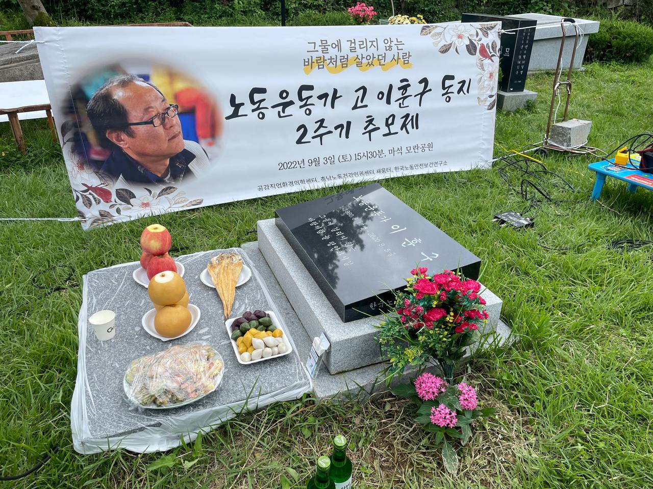 지난 9월 3일 토요일 마석 모란공원에서 이훈구 동지 2주기 추모제를 진행했습니다. 태풍 직전의 궂은 날씨에도 불구하고 많은 분들이 오셔서 이훈구 동지를 함께 추모했습니다. 와주신 모든 분들께 감사드립니다.