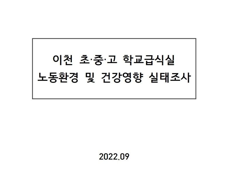 [현장연구 보고서] 이천 초· 중·고 학교급식실 노동환경 및 건강영향 실태조사 발간