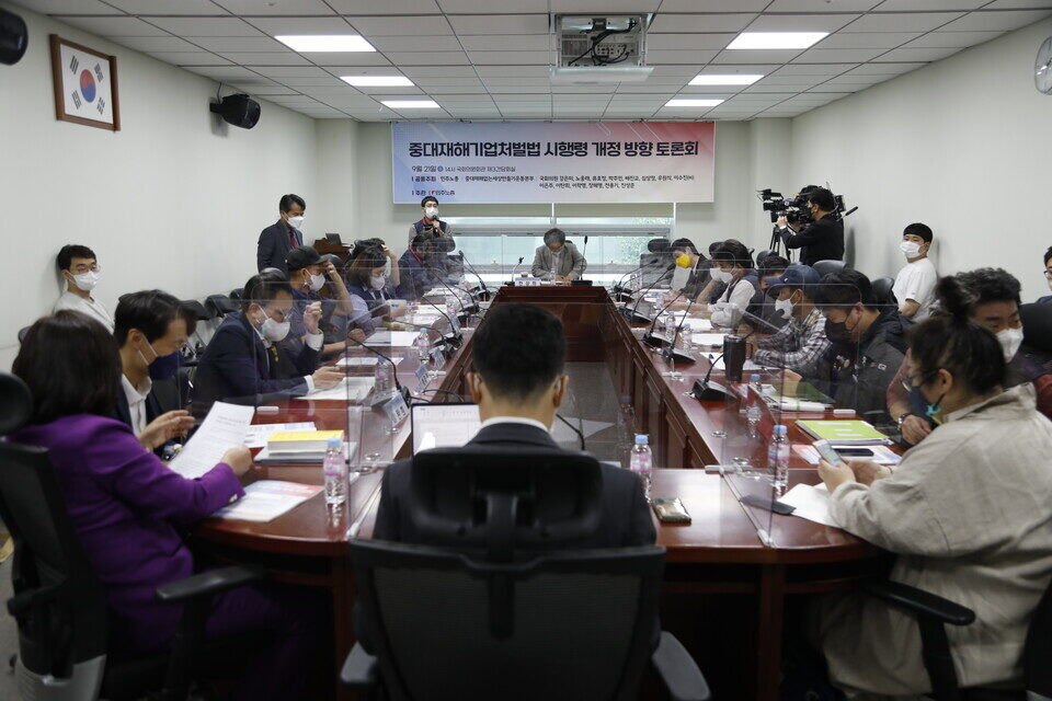 아직 시행 1년도 되지 않은 중대재해기업처벌법을 제대로 지키기 위한 ‘중대재해기업처벌법 시행령 개정방향 토론회’가 열렸습니다.