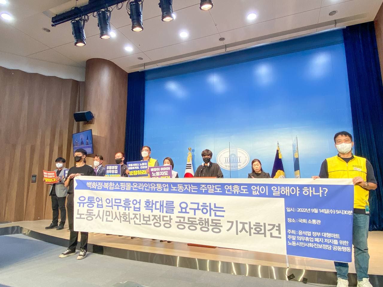 유통업 의무휴업 확대를 요구하는 노동시민사회진보정당 공동행동 기자회견