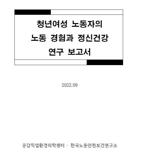 [현장연구 보고서] 청년여성 노동자의 노동경험과 정신건강 연구 보고서 발간